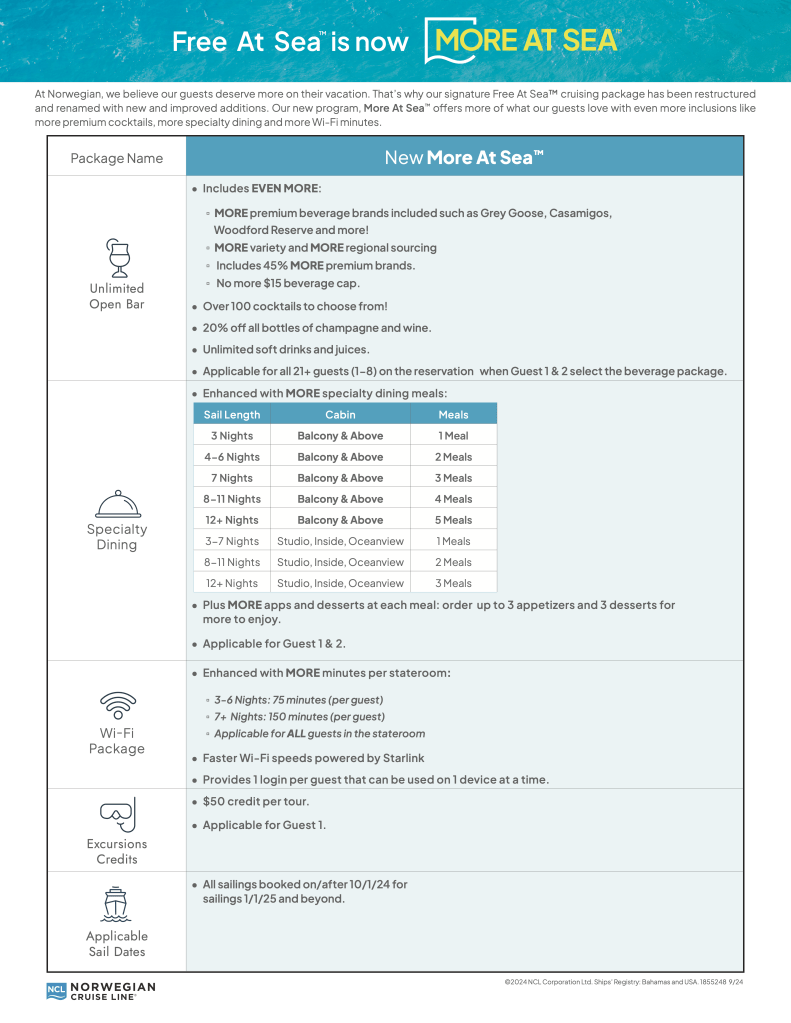 NCL Changes FREE at Sea to MORE at Sea